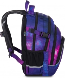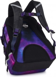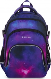 Let og rummelig skoletaske OXYBAG Scooler Galaxy med tre rum, organizer og lomme til laptop giver perfekt orden og komfort for skoleelever fra 3. klasse. Den har anatomisk formet, åndbar ryg, justerbare seler med brystrem, reflekselementer for sikkerhed og vandafvisende, forstærket bund. Volumen 28 l, vægt 780 g, bæreevne 8 kg.