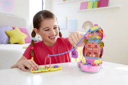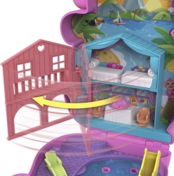 Lejesættet Polly Pocket Eventyr i Rio bringer tropisk sjov lige i dine hænder. Åbn det lyserøde abekasse og opdag det detaljerede interiør med hus og pool.