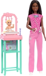 Bliv børnelæge med Barbie og hendes lille patient med elementer inspireret af lægeprofessionen!