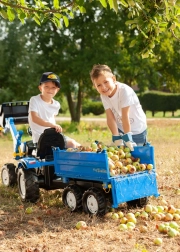 RollyMega-anhængeren er dobbelakslet, hvilket sikrer nem manøvrering og en glidende integration i leg. Den er udstyret med låsbare sideplanker, der sikrer lasten under transport. Plankerne kan også åbnes for at øge realismen ved lastning og aflæsning.