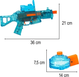 Den kraftige vandstråle med rækkevidde op til 10 meter forvandler enhver legeplads eller have til en arena fuld af sjov. Pistolen er udstyret med et 3,7 V 1200 mAh batteri med USB-opladning, så du altid er klar til næste runde. Det holdbare plastdesign er vandafvisende og stødresistent, ideelt til aktiv udendørs leg.