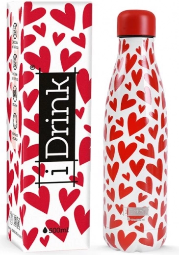 Termoflaske med smukke hjertemotiver holder dine drikke varme i lang tid. Ideel til daglig brug og som gave.
