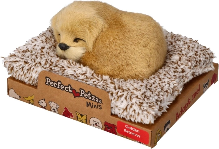 Interaktiv bjeffende Golden Retriever på hundeseng til børn fra 3 år. Realistiske lyde, blødt materiale og CE-sikkerhed. En fantastisk gave til små dyrepassere.