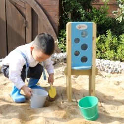 Dette træpanel til sand er designet til naturlig eksperimenteren med sand. Børn kan fylde den øverste del med sand og ved at frigive det gennem den nederste stopklods se, hvordan sandet løber gennem de forskellige huller i panelet. Derved udvikler de øje‑hånd‑koordination, sansemæssig opfattelse og lærer grundlæggende årsag‑virkning.