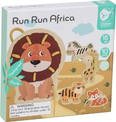 Sættet indeholder en giraf, en løve, en tiger, en ræv og en zebra. Glade illustrationer og klare farver motiverer til historiefortælling og til at lære dyre- og farvenavne.
