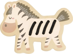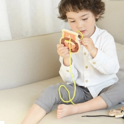 Med dette flotte sæt af træsnøre-dyr øver børn greb, tålmodighed og præcision. Ved at trække snoren gennem de forborede huller på dyrene styrkes fingre og håndled, og de udvikler naturligt hånd–øje-koordination. Legen er stille, beroligende og perfekt til både rejser og hjemme.