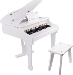 Dette mini-flygel fremmer en naturlig kontakt med musik og udvikler vigtige færdigheder: høresans, øje–hånd-koordination og tålmodighed. Det elegante udseende passer perfekt på børneværelset, og den solide udførelse tåler daglig brug.