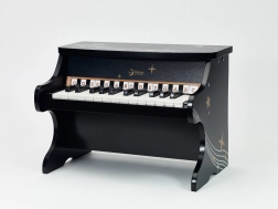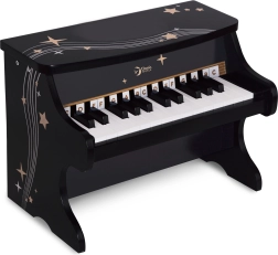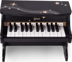 Dette stilfulde børneklaver fra Classic World er mere end bare legetøj – det er et veludført musikinstrument af massivt træ med glat sort lak og en ren, behagelig klang. Takket være nodelabels over tangenterne lærer børn nemt de første melodier og udvikler musikalsk forståelse fra helt lille.