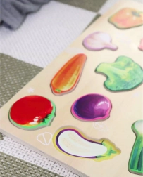 Hver brik repræsenterer en anden type grøntsag og træner genkendelse af former, farver og ordforråd.