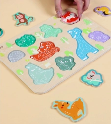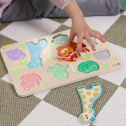 De farvede dyreformede brikker motiverer børn til at lægge puslespil og hjælper med at udvikle finmotorik og hånd-øje-koordination allerede fra 18 måneder.