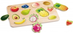 CLASSIC WORLD træpuslespil med frugtmotiver er det ideelle første puslespil til de mindste. Når børnene leger, matcher de de enkelte frugter med de rigtige huller, hvorved de naturligt udvikler finmotorik, hånd-øje-koordination og logisk tænkning. De levende farver og realistiske illustrationer motiverer til gentagen leg og udvider ordforrådet.