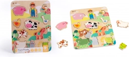 Oplev gårdens magi med det kvalitetsrige træindsætningspuslespil CLASSIC WORLD. Hver brik med en kærligt illustreret figur af et dyr eller en landmand passer præcist i sin udskæring, hvilket fremmer logisk tænkning og tålmodighed. Legen er ideel til den første introduktion til former og dyrenes navne.