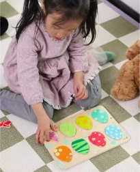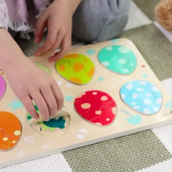 Legetøjet er ideelt til at udvikle hånd-øje-koordination, tålmodighed og kreativ tænkning. Træbrikkerne med glatte kanter ligger godt i små hænder og understøtter korrekt greb.