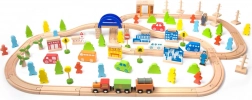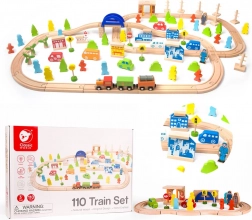 Oplev den store træjernbane med 110 dele fra CLASSIC WORLD. Det farverige sæt med skinner, bro, bygninger, køretøjer og figurer understøtter finmotorik, hånd–øje-koordination og kreativ leg. Sikkert, naturligt materiale og lang levetid gør denne togbanesæt til en fantastisk gave til børn fra 3 år.