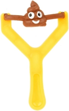 Blød, fleksibel projektil formet som en lorte-emoji til sjov målskydning uden skarpe kanter.