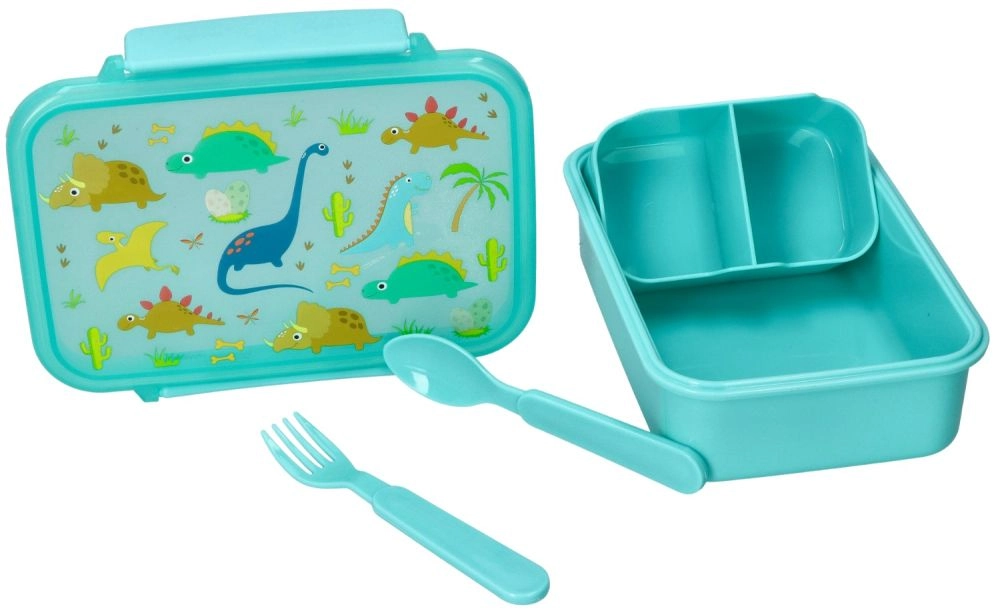 Praktisk madkasse med dinosaurmotiv, ideel til madpakke i skolen og på ture. Indeholder bestik – gaffel og ske, er egnet til fryser og kan opvarmes i mikroovn uden låg op til 100 °C. De kompakte mål 18 × 13 × 6 cm passer i skoletaske og rygsæk.