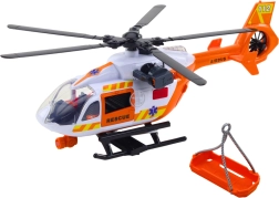 Redningshelikopteren i realistisk design giver børn spændende scenarier med luftredning. Både hoved- og halerotor roterer frit, lys og lyde efterligner troværdigt start, flyvning og landing, og den sænkbare krog med båre muliggør evakuering fra svært tilgængelige områder.