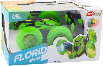 Den intuitive fjernbetjening gør det muligt at køre frem/tilbage, lave hurtige 360°-rotationer og smidige retningsskift. De grønne LED-oplyste hjul giver en imponerende effekt ved aftenkørsel og forvandler enhver bane til et show.