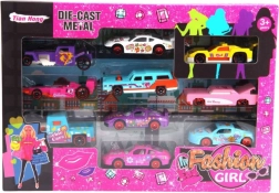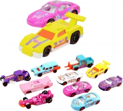 Dette stilfulde sæt er ideelt til børn fra 3 år, der elsker biler og ræs. Metal konstruktion med plastdetaljer sikrer lang levetid og bekymringsfri leg. Pastelnuancer af rosa, blå og lilla stimulerer fantasien og gør hver model til et originalt samlerstykke.