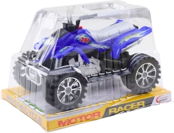 Den blå terrængående ATV til børn byder på realistisk udseende, sportsligt design og friktionsdrev (optræk) uden batterier. Takket være de store mønstrede hjul og den holdbare plastkonstruktion er den ideel til actionfyldt kørsel både inde og ude og udvikler finmotorik, fantasi og koordination.