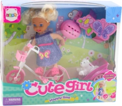 Cyklen har bevægelige hjul, styr og en praktisk kurv til små accessories. Med anhængeren kan dukken sikkert køre sin hund på lange ture og fælles eventyr.
