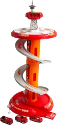 Den cirkulære rampe sikrer en glidende kørsel for bilerne fra øverste etage helt ned til basen – ideel til racerløb og actionfyldte udrykninger.