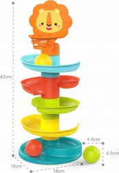 Dette farverige spiral tårn hjælper med at udvikle motoriske færdigheder, koordination og præcision hos dine børn. Fem niveauer sikrer langvarig sjov, mens den sympatiske løve på toppen kan inspirere børn til mål og forbedring af deres evner. Kuglerne indeholder små elementer, der laver lyde og tilbyder ekstra sensoriske stimuli. Legetøjet er lavet af sikker og testet plast til maksimal sikkerhed for små spillere.