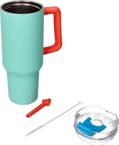 Denne store termokop med sugerør giver komfort og høj kapacitet til dine yndlingsdrikke. Det praktiske håndtag gør den nem at bære, det gennemsigtige låg med lås reducerer spild, og sugerøret gør det bekvemt at nippe, når du er på farten. Den grønne farve tilfører stil til din daglige hydrering.