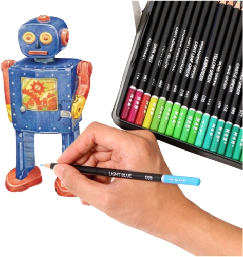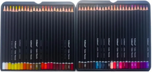 Hver nuance er nummereret for hurtigt at finde den rigtige farve midt i arbejdet. Kroppe af lindetræ spidses let og mindsker risikoen for brud. Metalæsken beskytter sættet på rejser og ved opbevaring derhjemme og er en ideel gave til kreative sjæle.