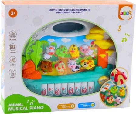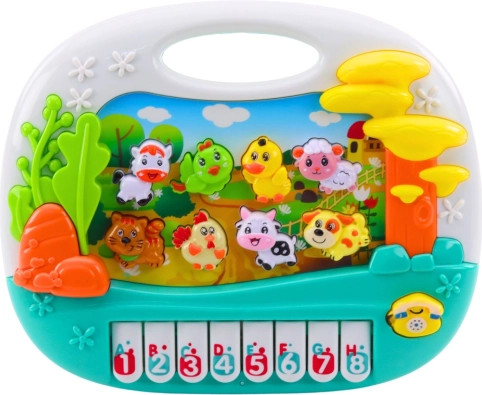 Det farverige interaktive klaver introducerer børn til musik og rytme. Det tilbyder læring om dyr, farver og tal, realistiske dyrelyde og glade melodier. Det har 8 tangenter, 8 dyreknapper og en speciel telefonknap til forskellige legefunktioner. Den sikre, holdbare konstruktion og det praktiske håndtag sikrer nem brug derhjemme og på farten.
