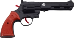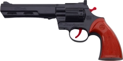 En populær revolver inspireret af westernklassikere, der giver en imponerende effekt og troværdige detaljer. Med den drejende tromle og muligheden for at bruge kapsler skaber den en autentisk fornemmelse af skud, men forbliver samtidig egnet til leg uden pyroteknik. Det sorte design med røde accenter understreger det stilfulde look.