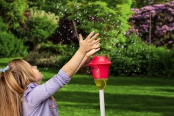 Modellen Fru Blu skaber en fantastisk atmosfære for både børn og voksne med en stor mængde farverige bobler.
