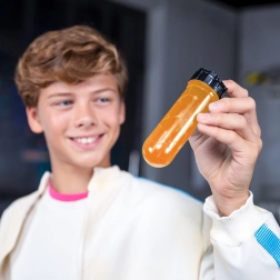 Fyld røret med vand, luk det og ryst, indtil det begynder at boble, og afslør din hemmelige fangst.