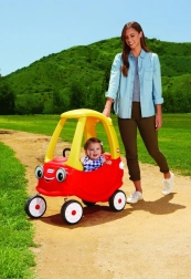 Børn kan drive Cozy Coupe med deres egne ben eller blive skubbet takket være det komfortable håndtag. Den aftagelige bund giver mindre børn tryghed og giver forældre fuld kontrol over kørslen.