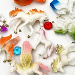 Figurerne har smukke detaljer – vinger, horn og farverige manker. De fungerer både som dekoration og som samlerobjekter.