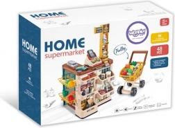 I pakken findes også en indkøbsvogn/kurv til leg for to, papirpenge, betalingskort og forskellige madvarer (frugt, grønt, drikke, mejeriprodukter m.m.). Det æstetiske design passer ind i ethvert interiør, og den farverige gaveæske glæder ved enhver lejlighed.