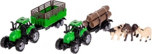 De grønne traktorer med aftagelige vogne efterligner det rigtige arbejde på gården – fra høsttransport til flytning af træ eller dyr.