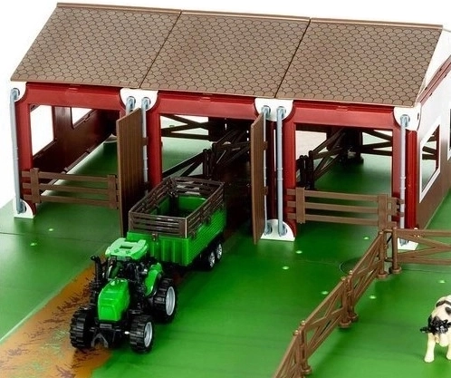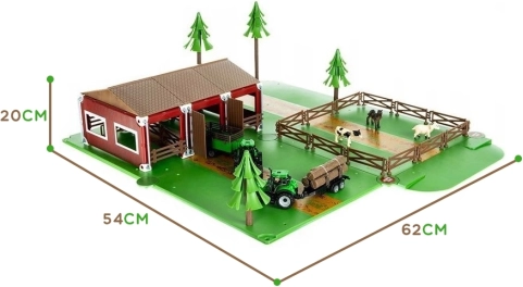 - Grundplader, stald, indhegninger, træer, dyrefigurer, 2 traktorer med trailere og tilbehør