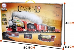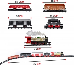 Sættet indeholder 29 dele: lokomotiv, kulvogn og vogne, så børn kan bygge deres egen rundstrækning på 170 × 82 cm. Den samlede længde af toget er ca. 94 cm, og skinnebanens længde er 460 cm. En ideel gave, der understøtter udvikling af fantasi og manuelle færdigheder.