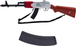Legetøjet er udstyret med et aftageligt magasin, som øger realismen og giver endnu mere plads til fantasi under leg. Skæftet i trælook og metalliske detaljer giver et autentisk udseende. Den medfølgende skulderrem gør den nem og behagelig at bære, hvilket er ideelt til temalege og iscenesættelser.