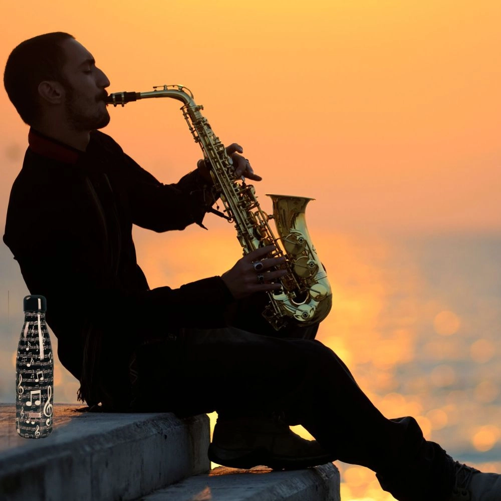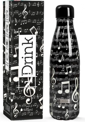 Denne sorte termoflaske med musiktemaet “Music” imponerer med en afdæmpet, elegant æstetik og 3D-effekt. Takket være de kompakte mål passer den let i rygsækken eller flaskeholderen. Den er ideel til både varme og kolde drikke, som den hjælper med at holde længere ved den ønskede temperatur.