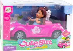 Den søde dukke sætter sig i den stilfulde lyserøde cabriolet med åben konstruktion, som gør det nemt at sætte figuren i og tage den ud. Takket være bevægelige arme og ben kan du let placere hende bag rattet og tage på tur med den trofaste hund på bagsædet.
