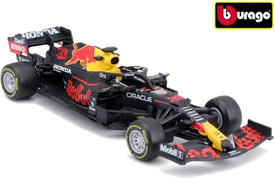 Samlermodel i skala 1:43 gengiver troværdigt Red Bull Racing RB16B fra Abu Dhabi Grand Prix 2021 med autentiske farver og logoer. Inkluderer en kørerfigur og en gennemsigtig vitrine til sikker udstilling. Specialudgaven Drivers' Champion 2021 fejrer verdensmesterskabet for Max Verstappen. Præcisionshåndværk fra Bburago gør den til et fremragende stykke i enhver F1-samling.