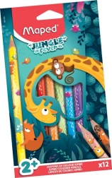 Sættet med 12 robuste Maped Jungle Fever Jumbo-farveblyanter er designet specielt til børn allerede fra 2 år. Disse blyanter kendetegnes ved deres trekantede skaft, som hjælper børn med let at holde om dem og udvikle korrekt greb om skriveredskabet. Den bløde og holdbare stift giver et tydeligt farveresultat på papiret og er modstandsdygtig over for brud.