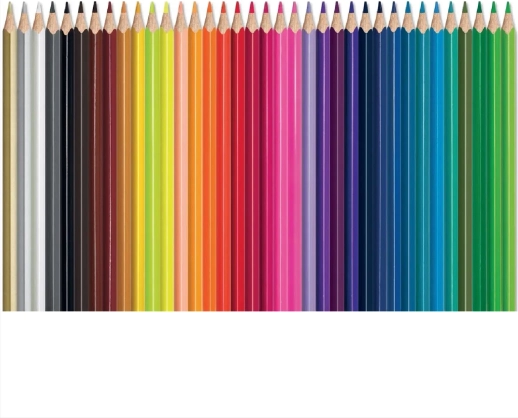 Sættet med 36 styk giver et bredt udvalg af strålende og dækkende farver, suppleret med metallic (sølv, guld) og fluorescerende nuancer til effektfulde detaljer. Blyanterne har standardlængde på ca. 17 cm og en stiftdiameter på 2,9 mm, ideel til tegning, farvelægning og skoleprojekter.