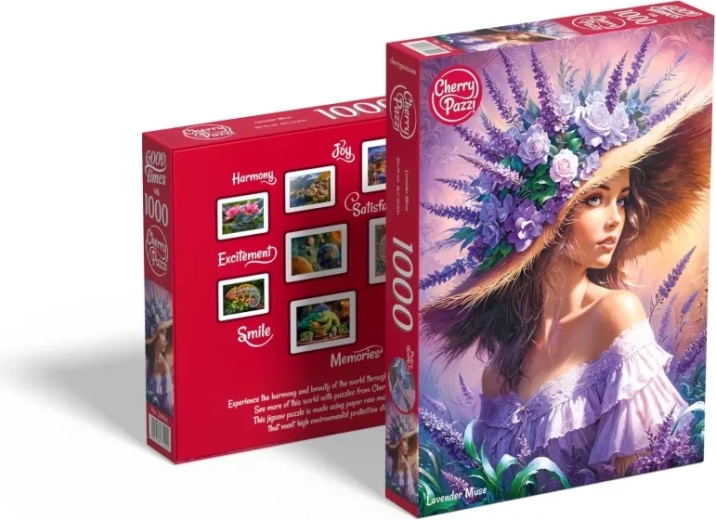 Nyd afslapning med at lægge et smukt motiv med lavendler – puslespillet CHERRY PAZZI Lavendel-muse tilbyder 1000 brikker for en behagelig udfordring, og det færdige puslespil måler ca. 50 × 70 cm.
