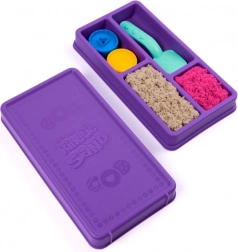 Sandet er fremstillet af naturligt materiale, holder sammen og er let at rydde op. Det tørrer ikke ud, så du kan vende tilbage til kreativ leg igen og igen. Det aflåselige lilla etui holder sand og værktøj pænt på plads – ideelt til rejser og børneværelset.