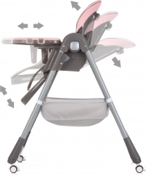 Op til 7 højdepositioner på sædet, 4 ryglænspositioner og 2 fodstøttepositioner sikrer komfort ved både måltider og hvile. Sædet i ECO-læder er blødt og let at tørre af.