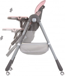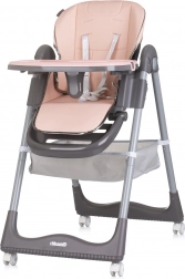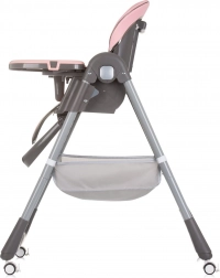 Den praktiske dobbelt bakke med aftagelig øverste del gør servering og rengøring lettere. Sikkerheden sikres af 5-punkts seler med polstring og T-stang på grundbakken. Med 4 hjul kan højstolen let flyttes rundt i hjemmet, mens opbevaringskurven rummer legetøj og fodringsudstyr. Den kan foldes kompakt for at spare plads derhjemme og på farten.