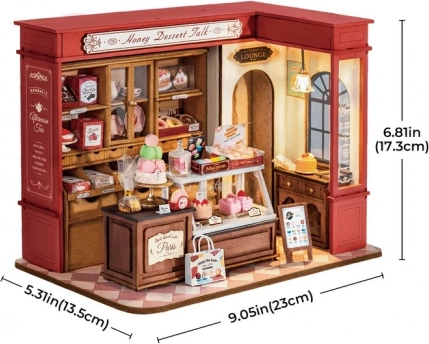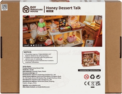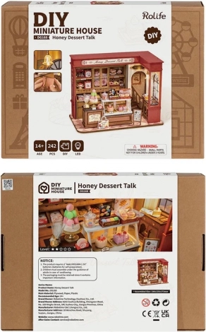 Byg dit eget “Honning-bageri” – et realistisk diorama med montrer, hylder og miniaturedesserter, der lyser ethvert rum op. De præcist udskårne dele klikker sikkert sammen uden lim, så byggeriet er rent, sjovt og samtidig robust. Den integrerede LED-belysning skaber en behagelig atmosfære og fremhæver alle detaljer i udstillingen.